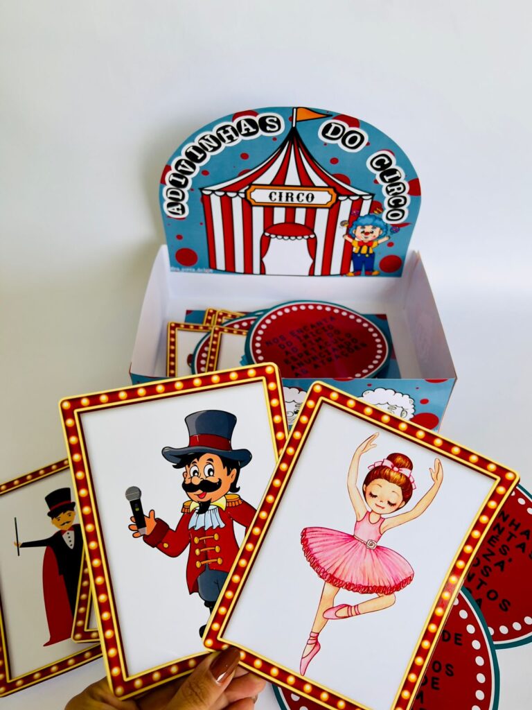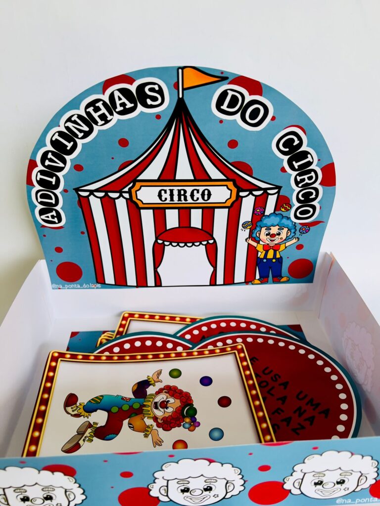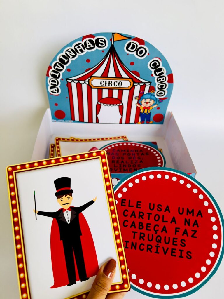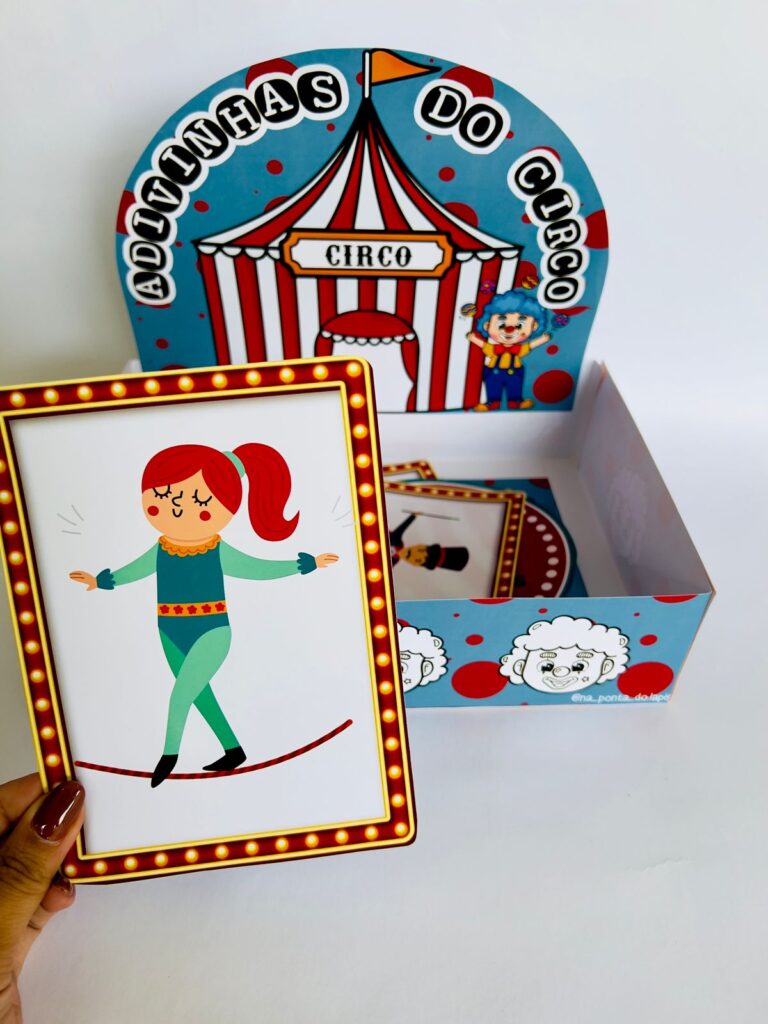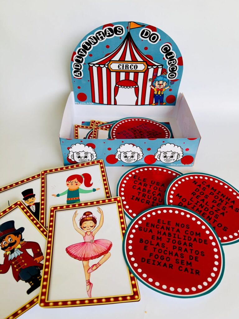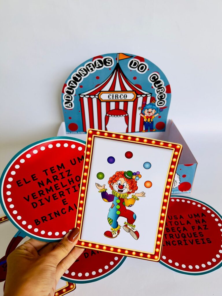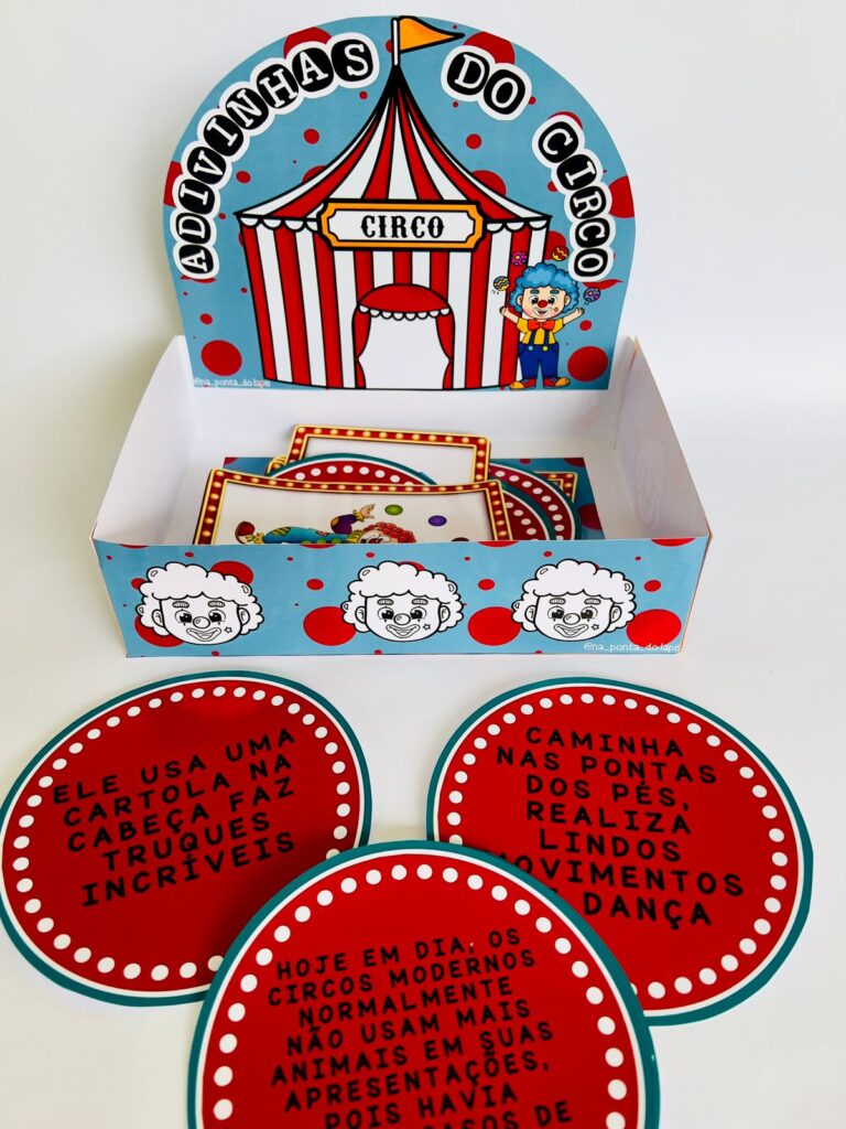 São 10 adivinhas sobre o circo e os personagens correspondentes.