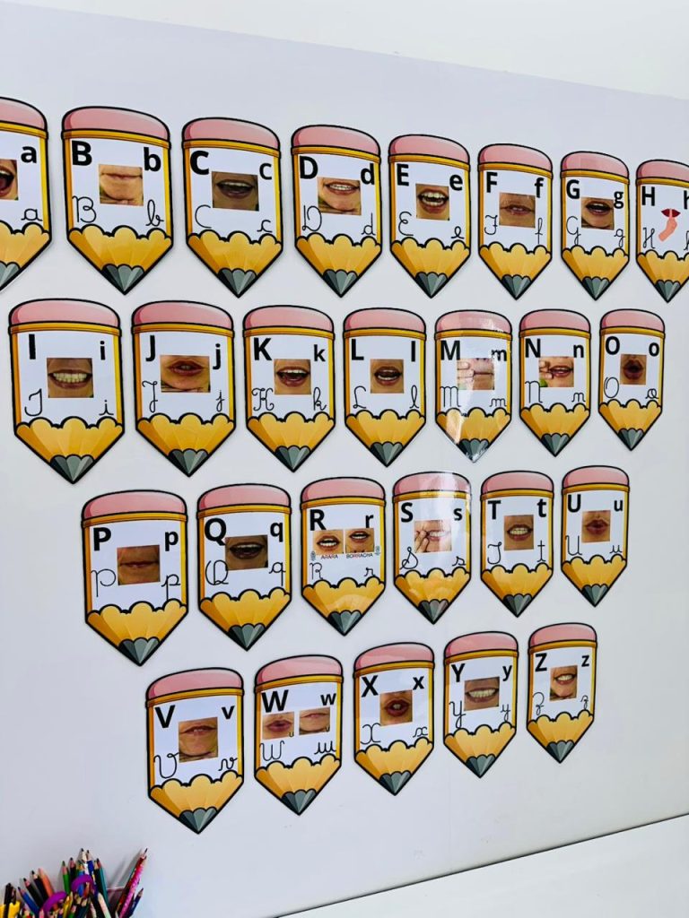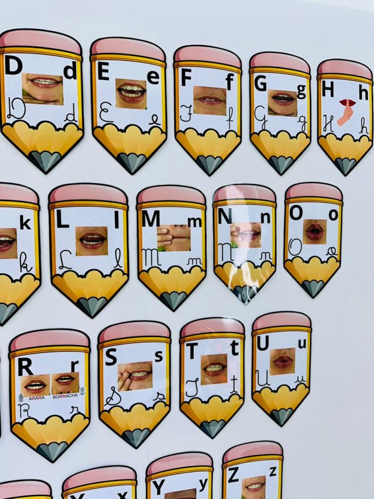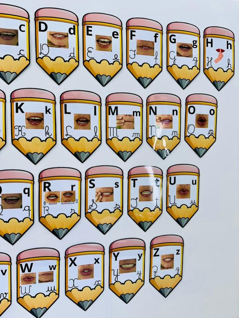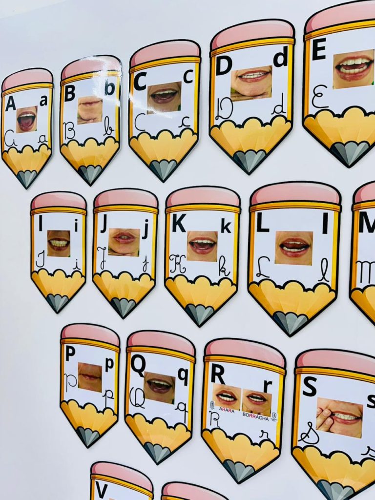 Arquivo pedagógico desenvolvido para auxiliar no processo de alfabetização por meio da associação entre letra, som e articulação da boca.