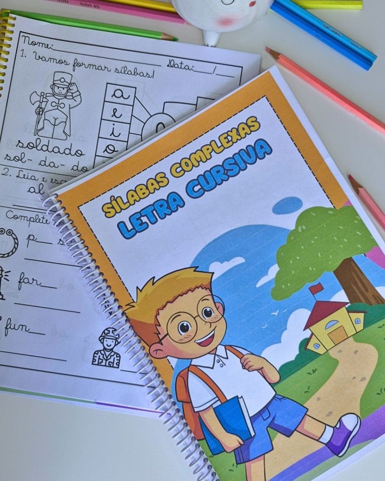 Apostila pedagógica completa para trabalhar as sílabas complexas de forma clara, organizada e significativa, com foco na leitura e na escrita em letra cursiva.