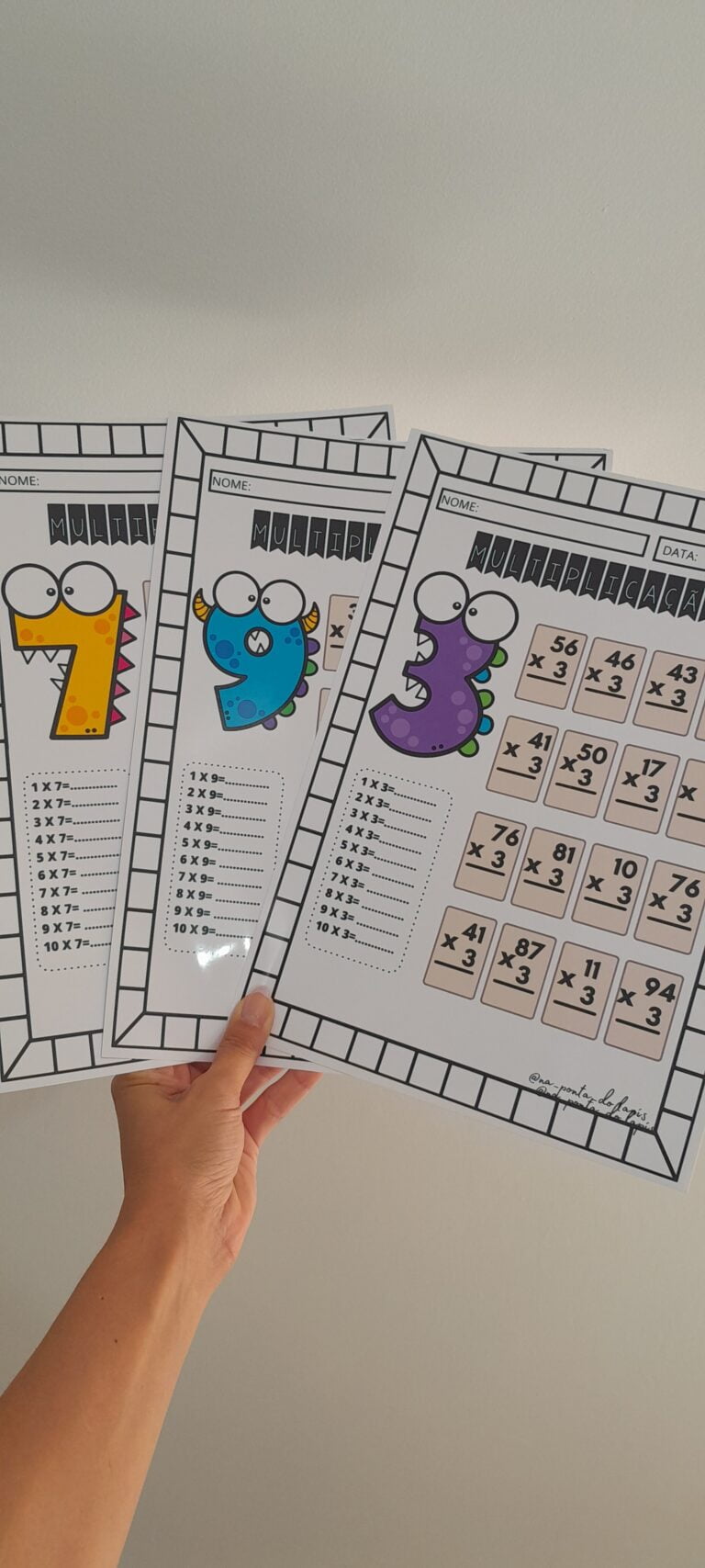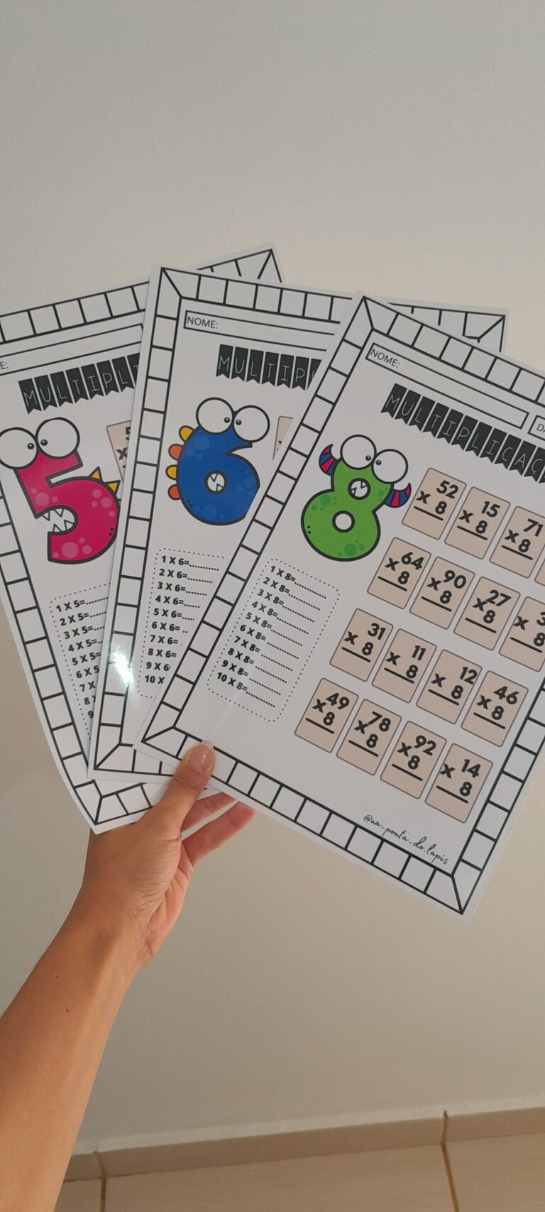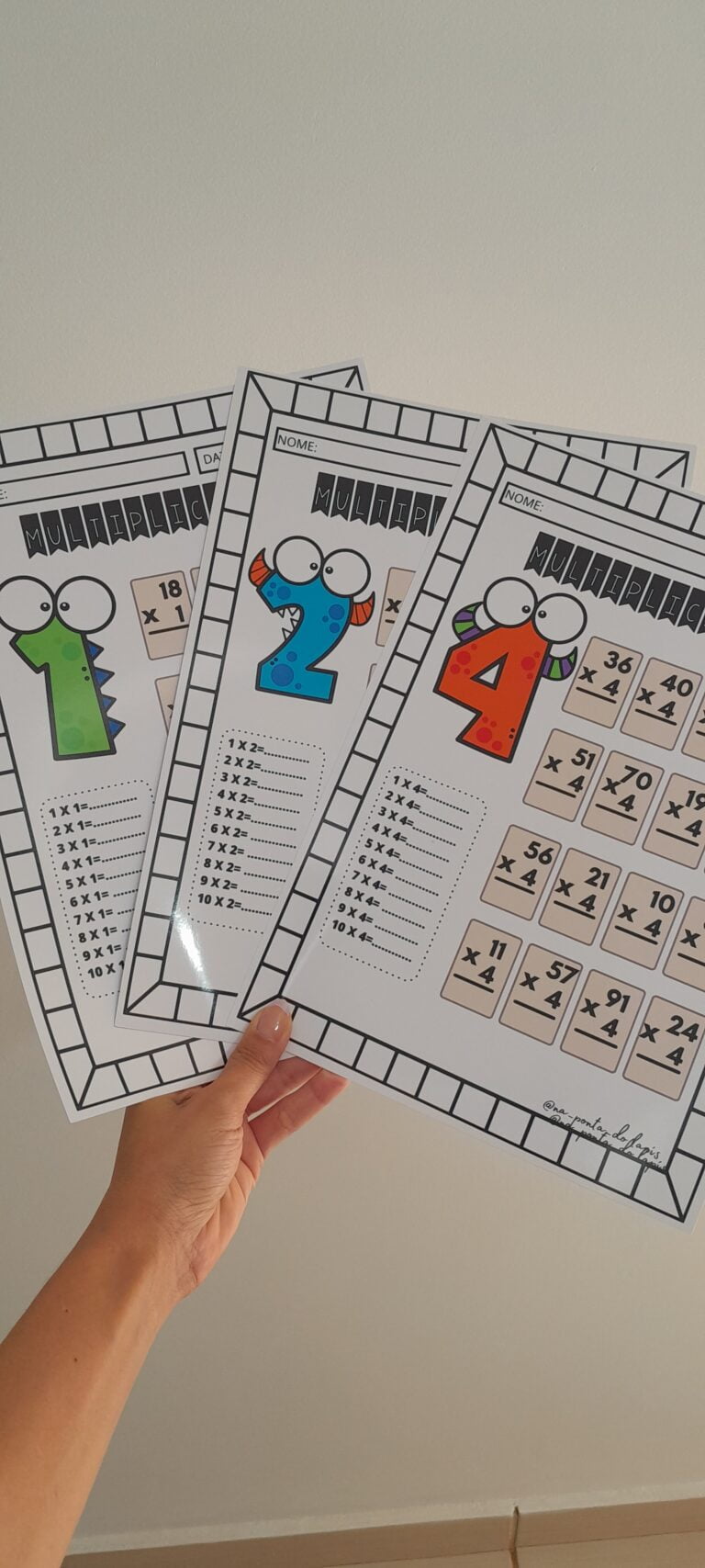 O arquivo é composto por 9 páginas, sendo uma página para cada tabuada de 1 a 9.