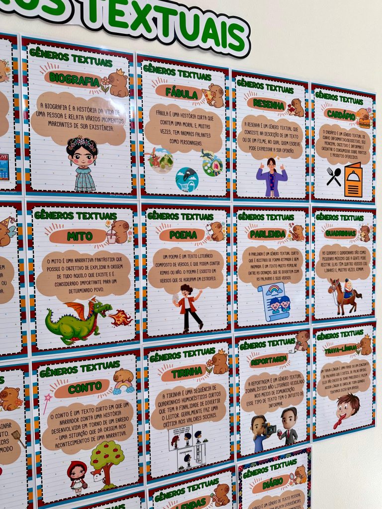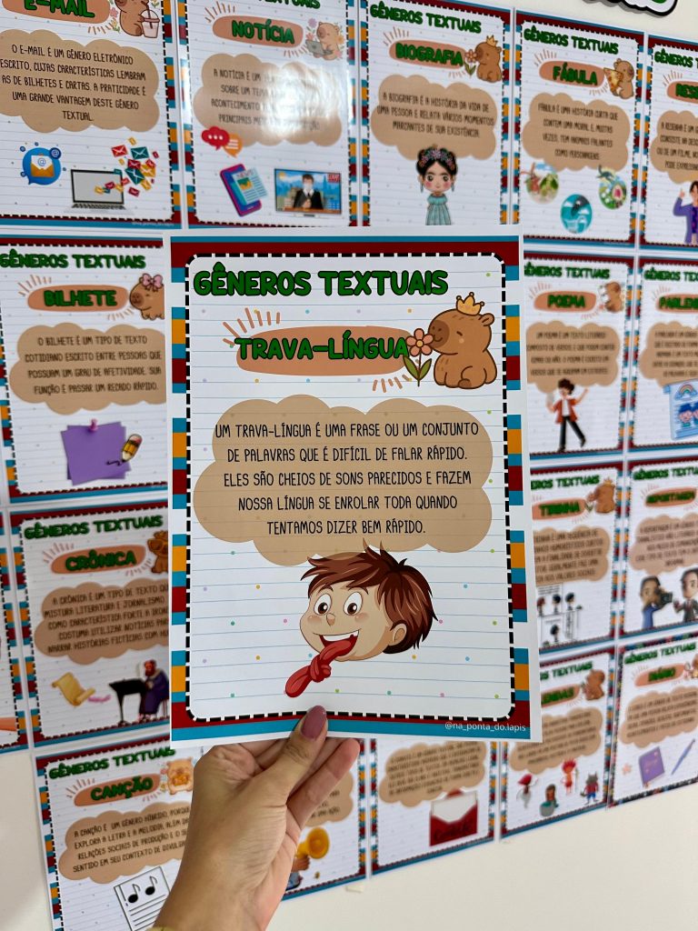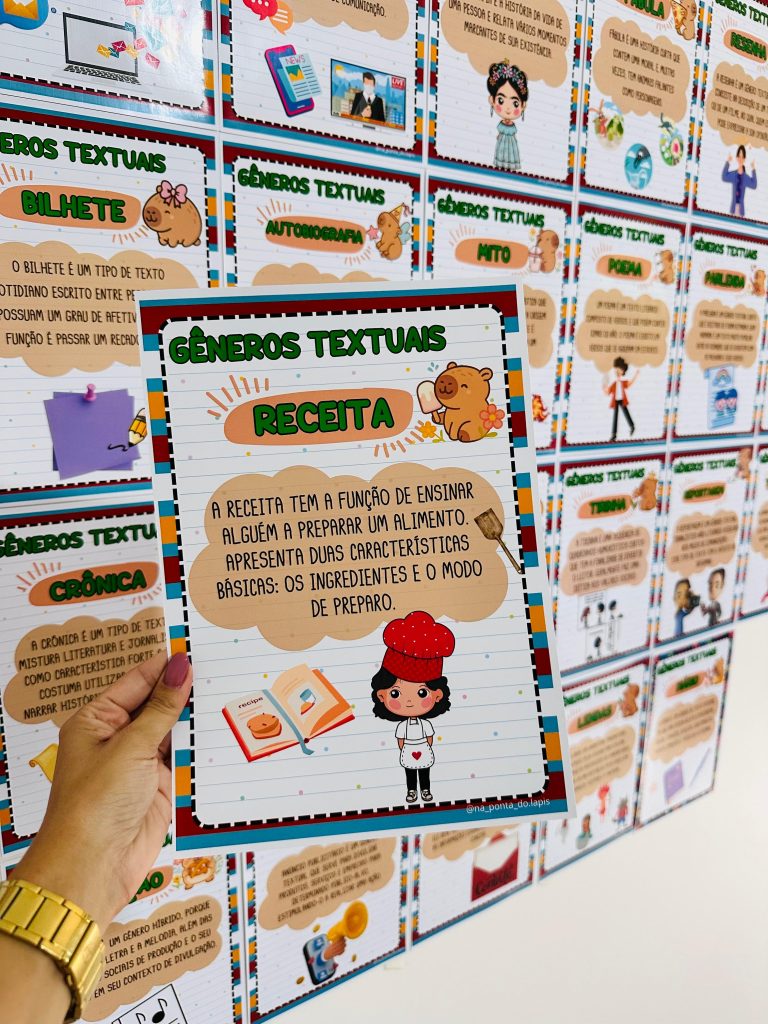 Este arquivo foi desenvolvido para auxiliar o trabalho com gêneros textuais de forma organizada, visual e prática em sala de aula.