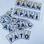 1 letra em cada carta, junto com o desenho do nome a ser formado.