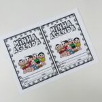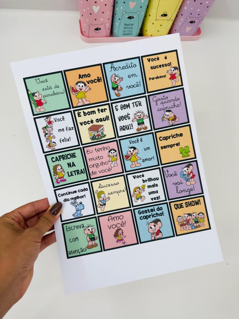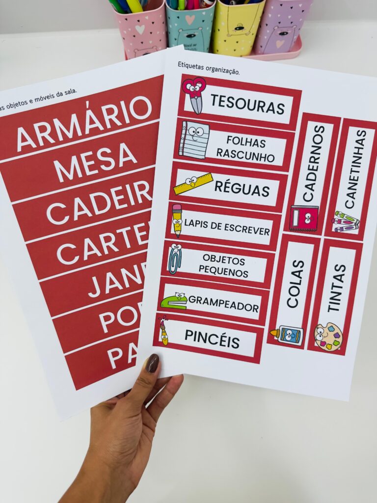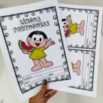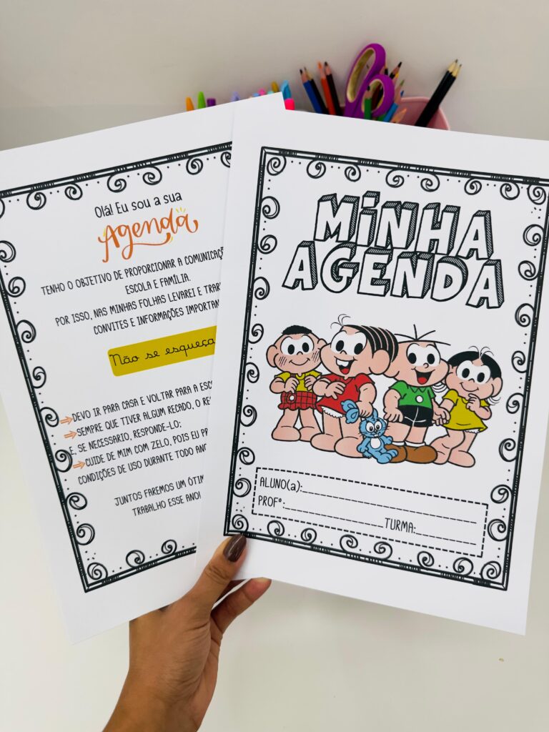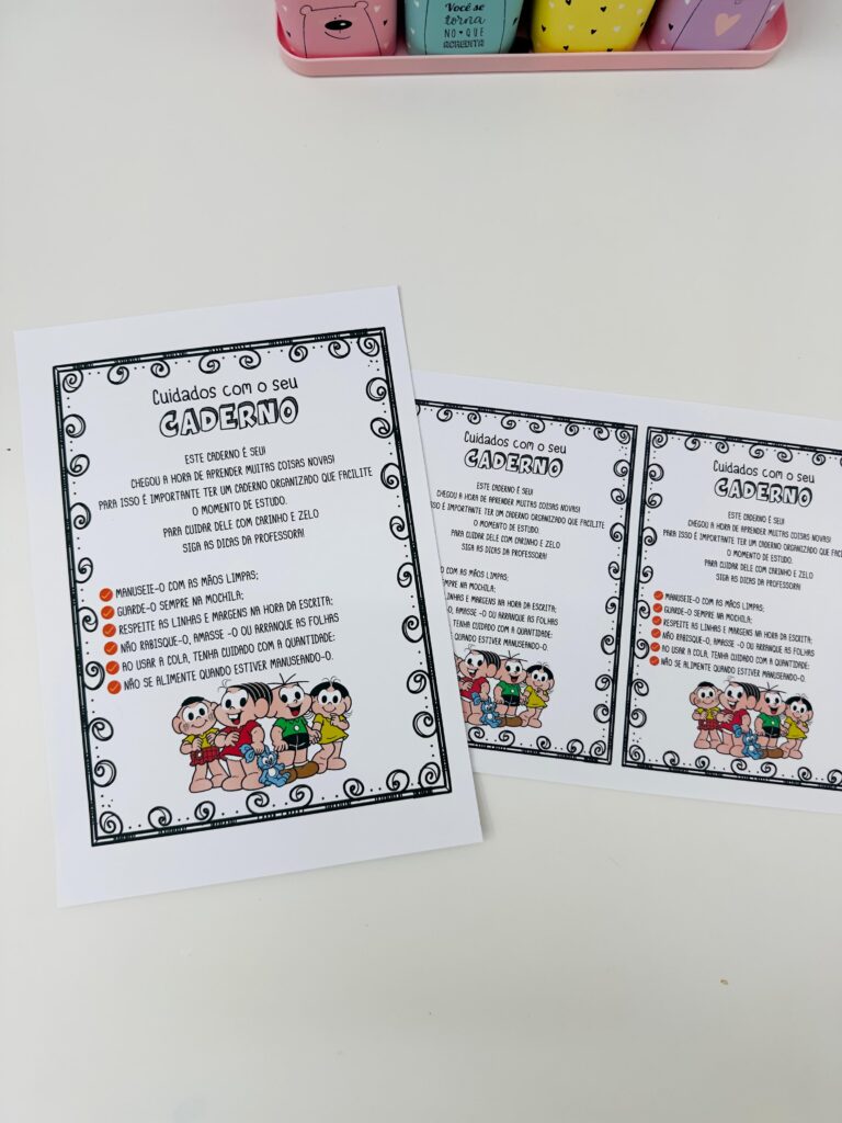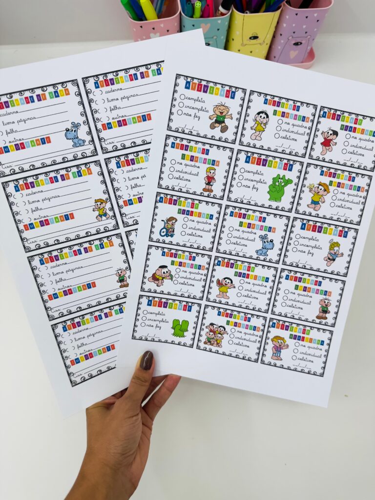15 capas de caderno (Língua Portuguesa, inglês, matemática, raciocínio lógico, história, geografia, ciências, produção de texto, ortografia, ditado, interdisciplinar, tarefa de casa, tarefa de sala, espanhol, artes, natureza e sociedade)