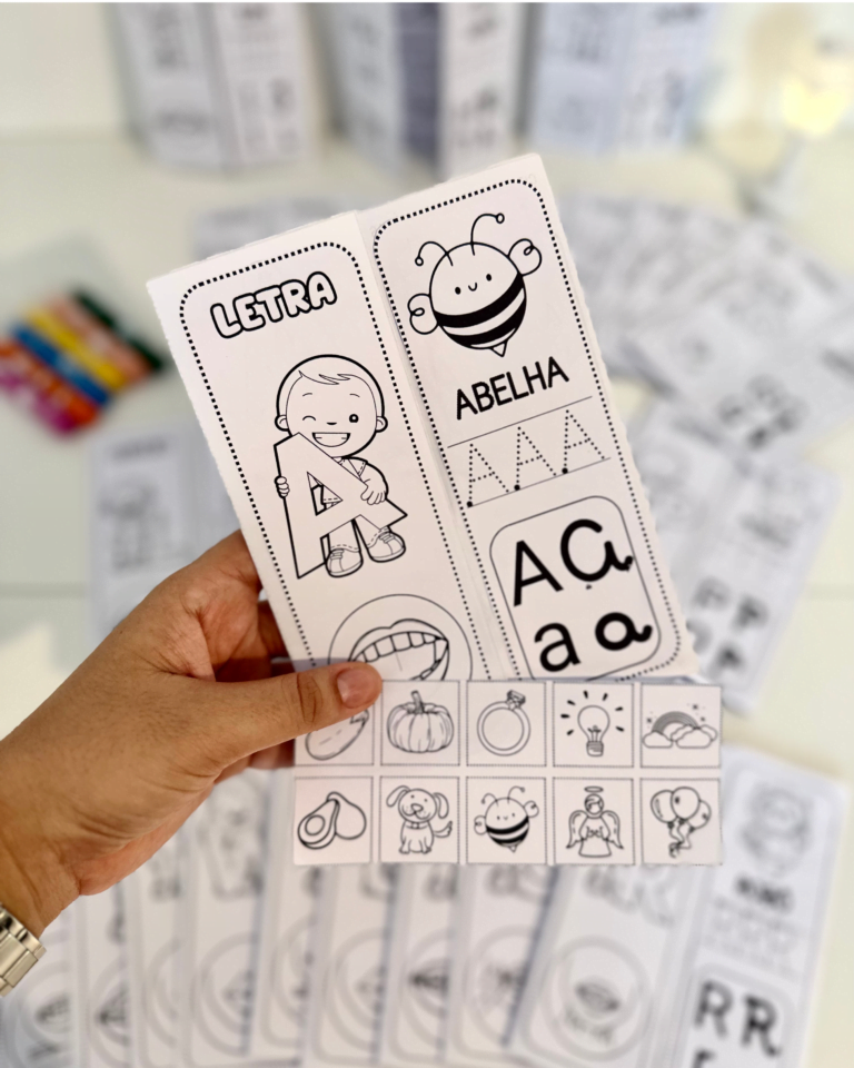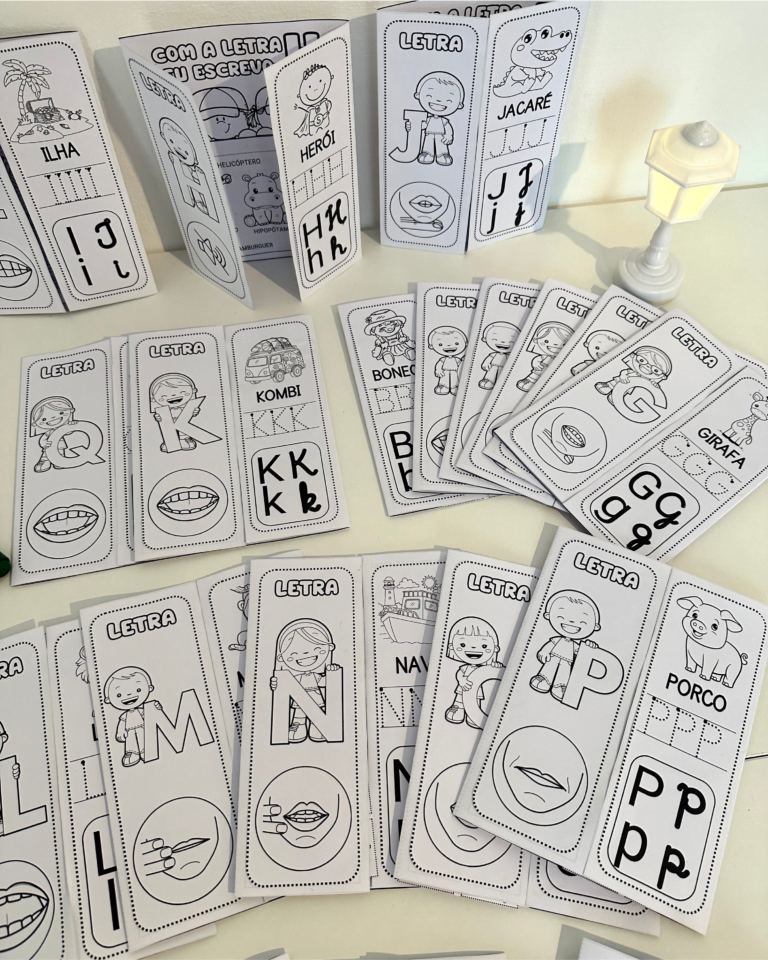 Arquivo Lapbook do Alfabeto com livrinhos para trabalhar todas as letras do Alfabeto. O arquivo vai em PDF com 56 folhas, pronto para impressão, com imagens para colorir. Recurso excelente para trabalhar o alfabeto com crianças em fase de alfabetização. Inclui as boquinhas fonoarticulatórias, favorecendo a compreensão sonora de cada letra e desenvolvendo a consciência fonêmica.