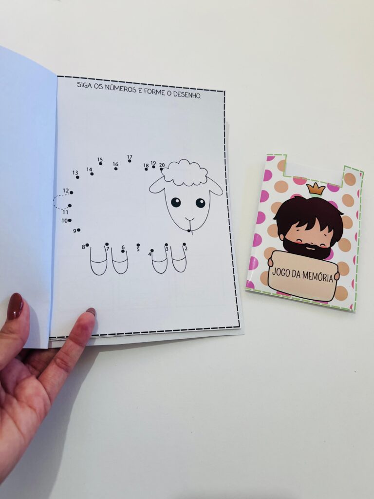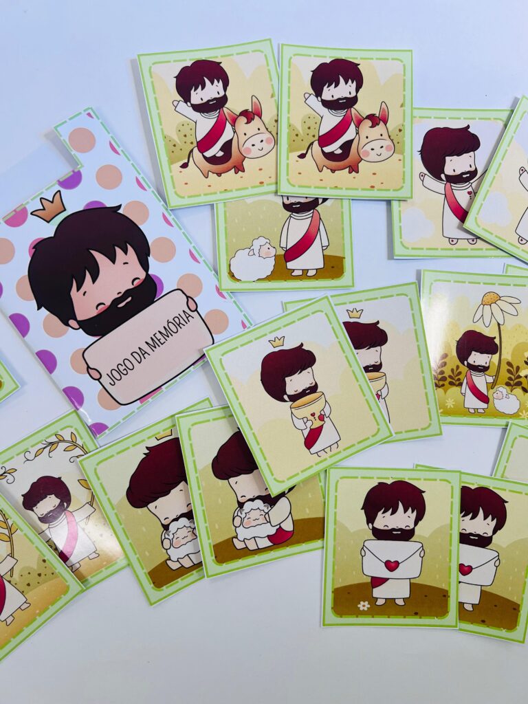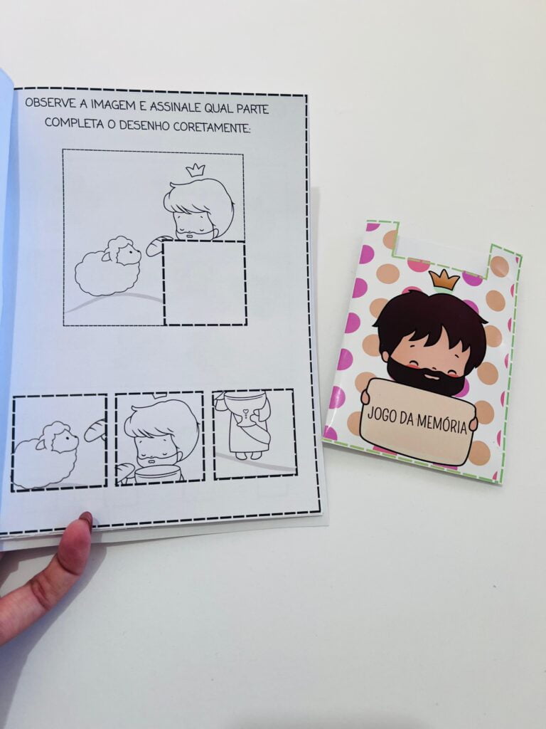 Acompanha um joguinho da memória com envelope para guardar.