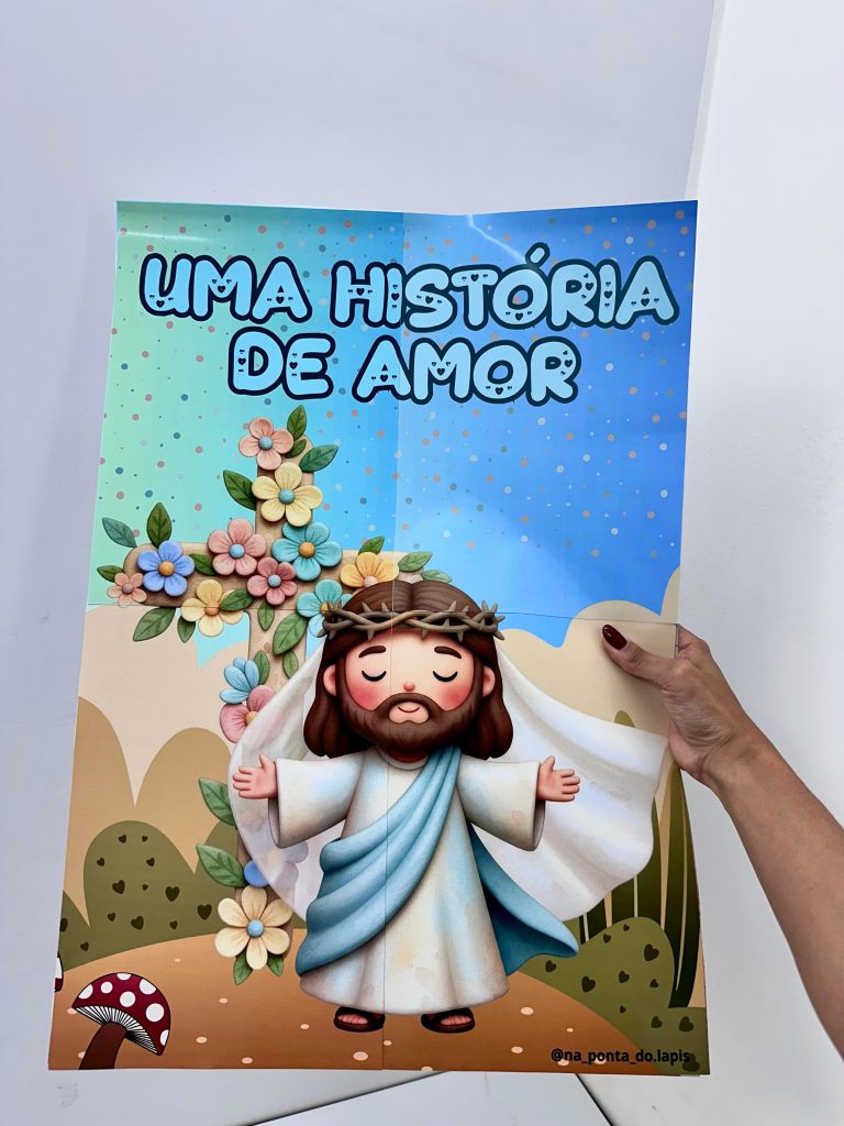 Este Livro Gigante: “Uma História de Amor” conta, de maneira simples e visual, a história do amor de Jesus por nós. Perfeito para momentos de contação de história, rodas de conversa e atividades em sala de aula.