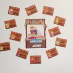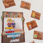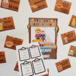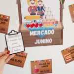 A criança recebe um pedido e calcula o valor total observando as placas com os valores.