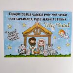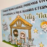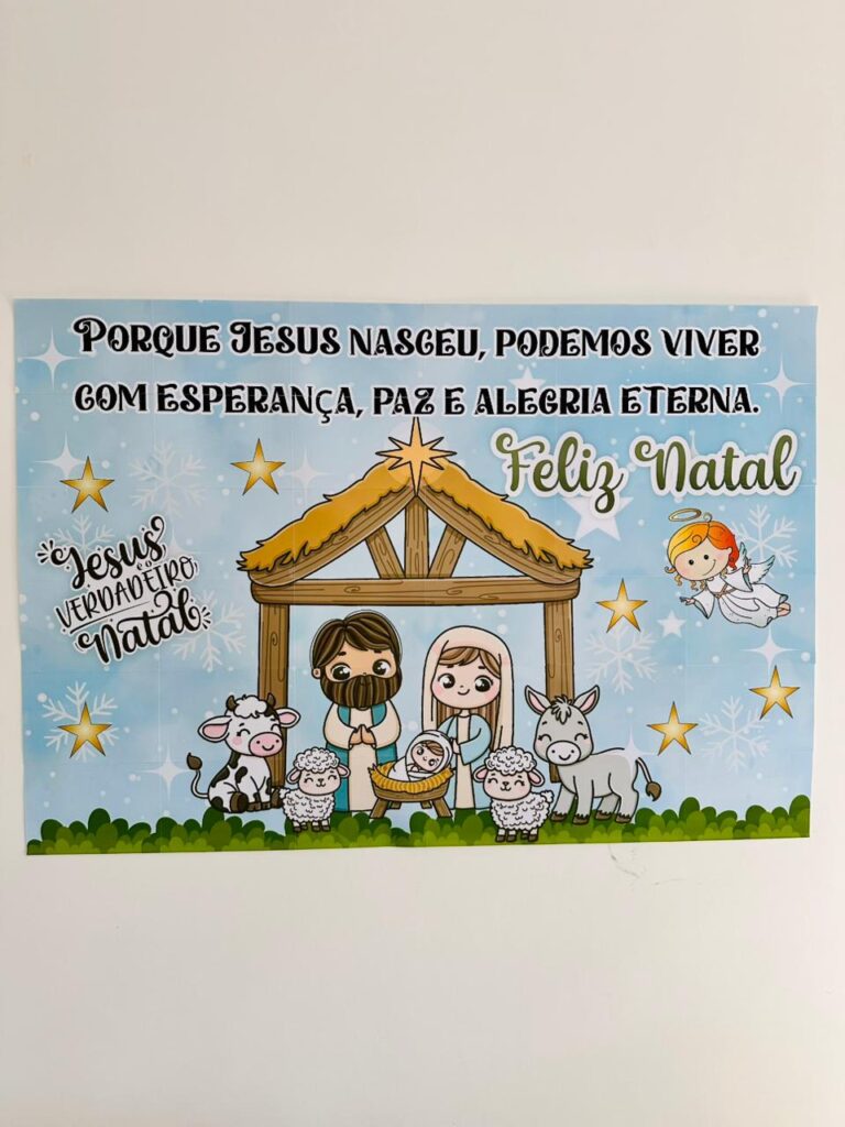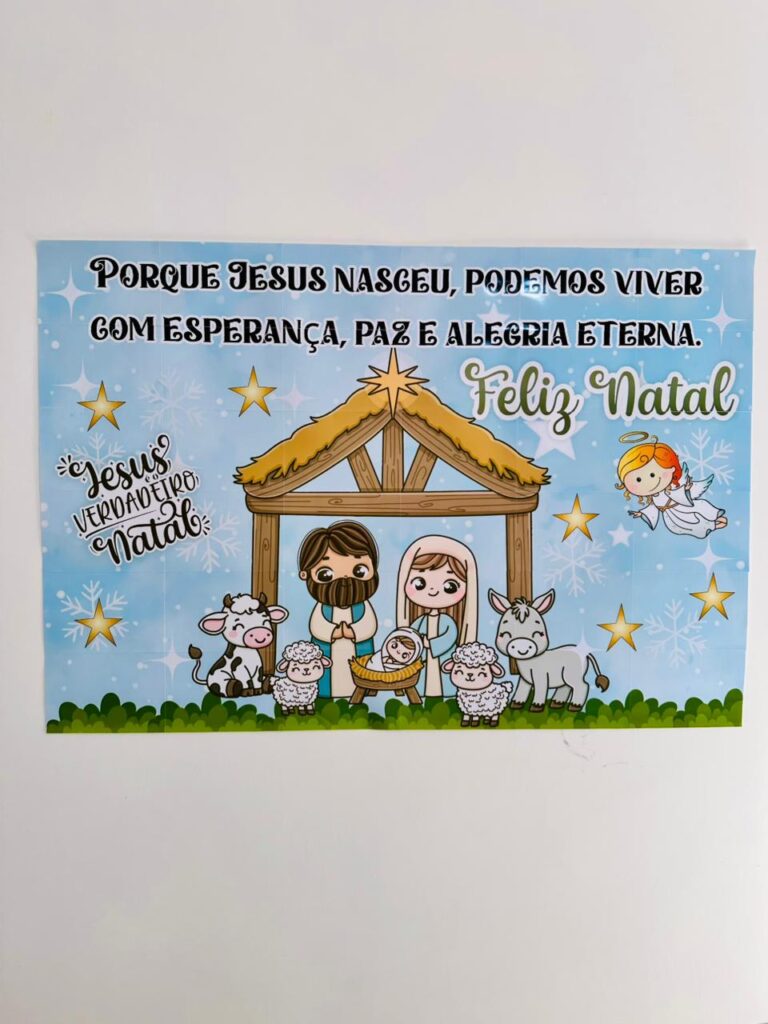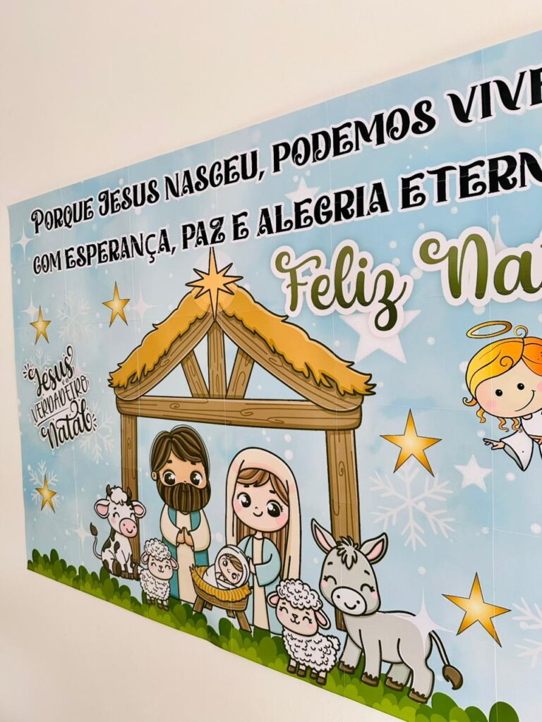 Celebre o verdadeiro sentido do Natal com este lindo painel colorido, que retrata o nascimento de Jesus com ternura e encanto! 💫