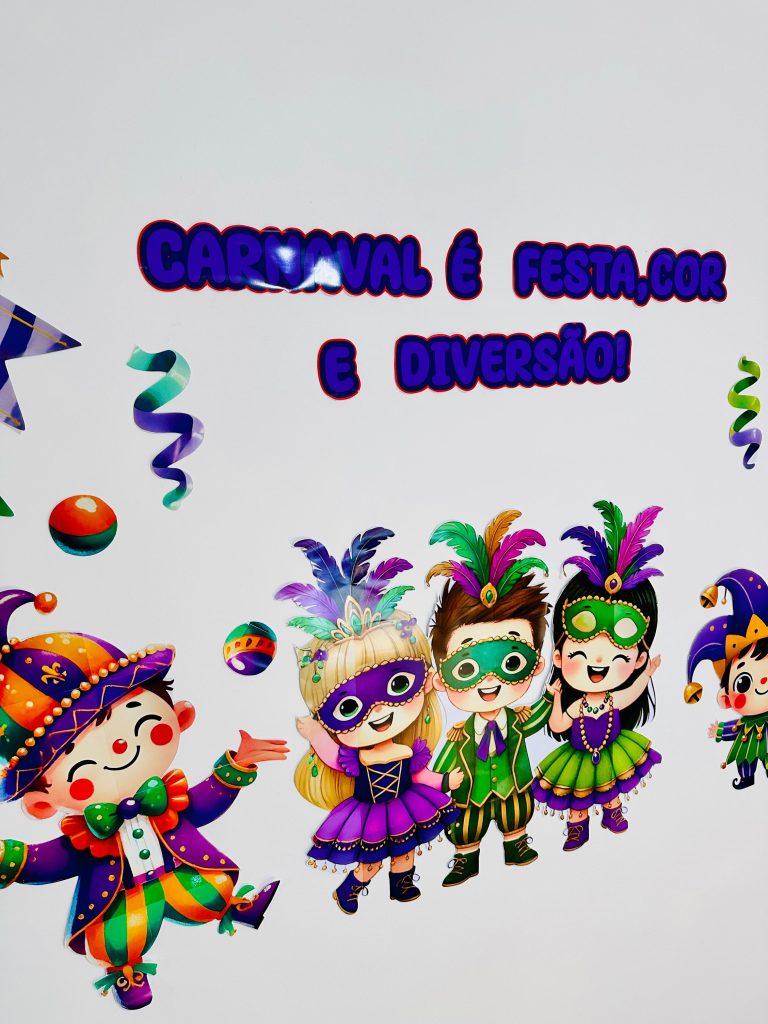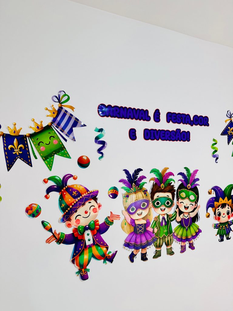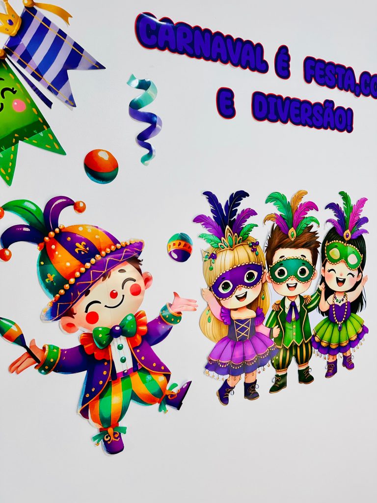 Transforme seu espaço com esse painel encantador, cheio de alegria, cores e personagens fofos que vão deixar o Carnaval ainda mais especial! 🥳💜