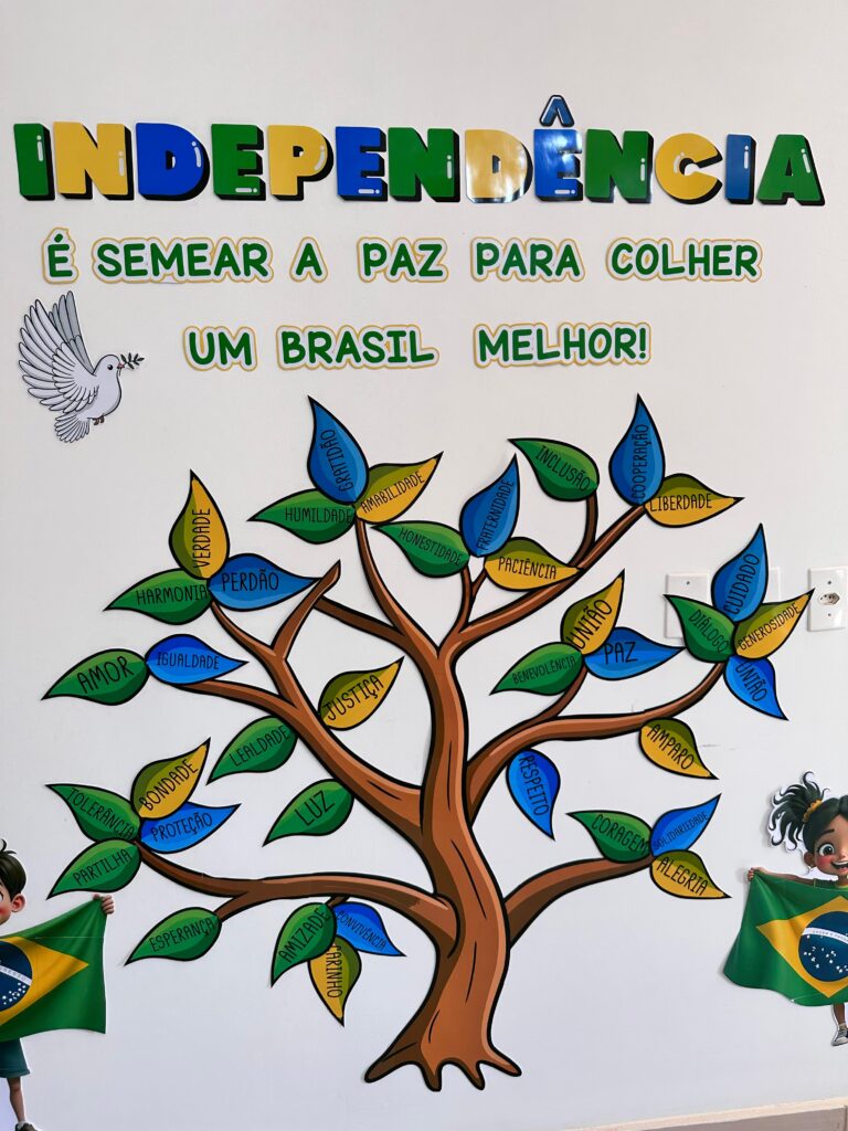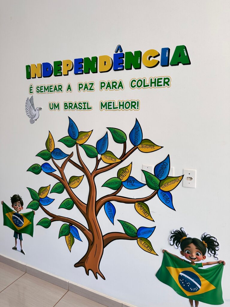 Este painel especial foi criado para trabalhar o tema da Independência do Brasil (07 de setembro) de uma forma diferente, valorizando os ideais de paz, união e respeito.