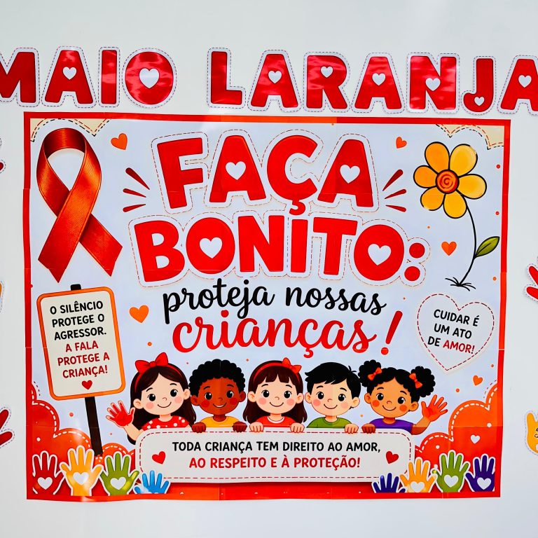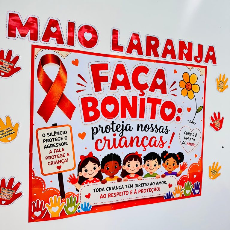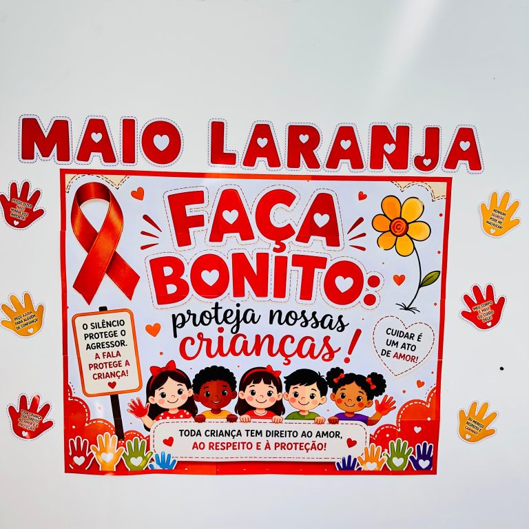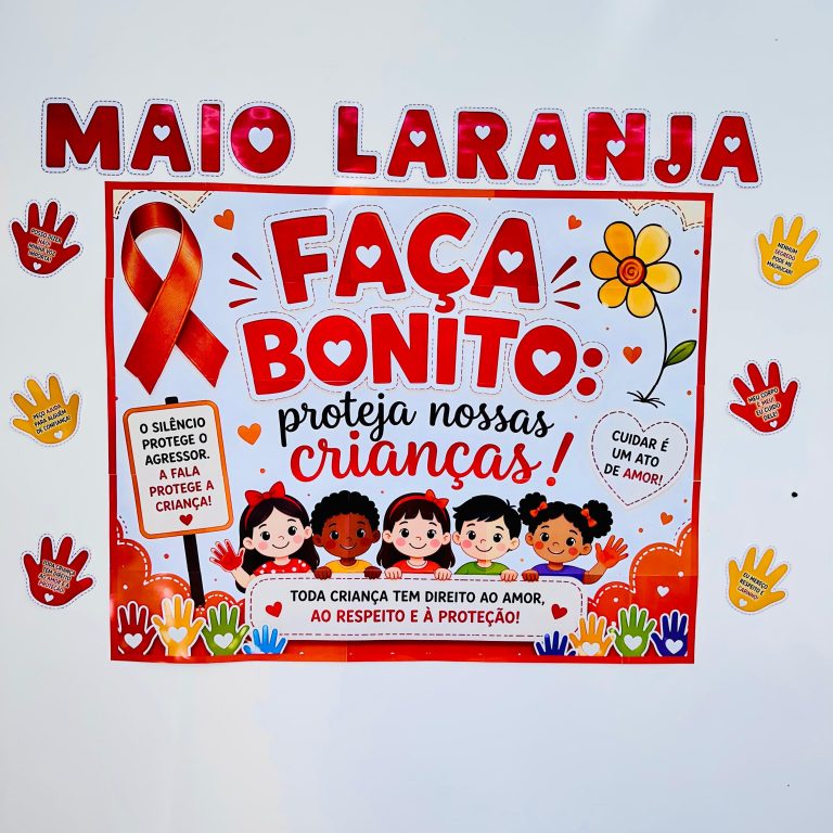 Leve conscientização, acolhimento e significado para sua sala de aula com este painel completo do Maio Laranja!