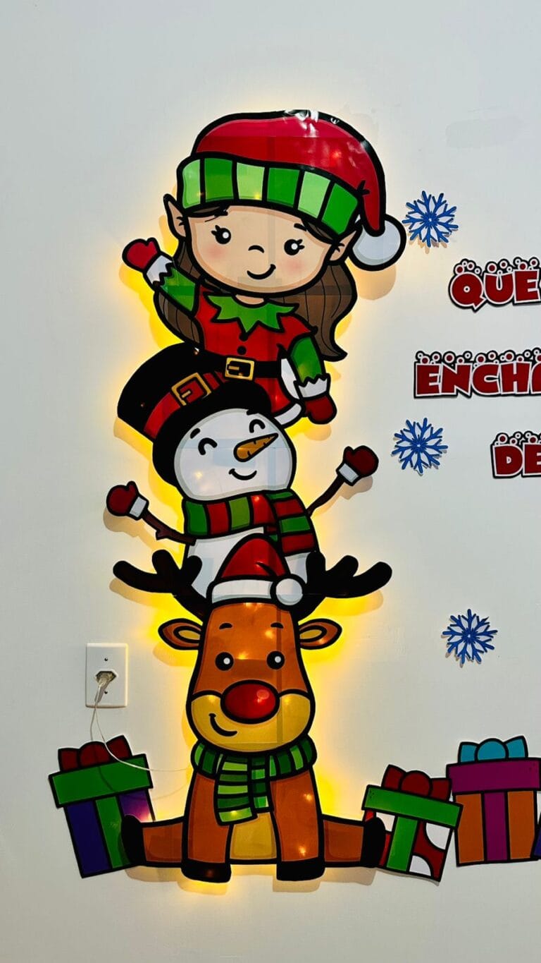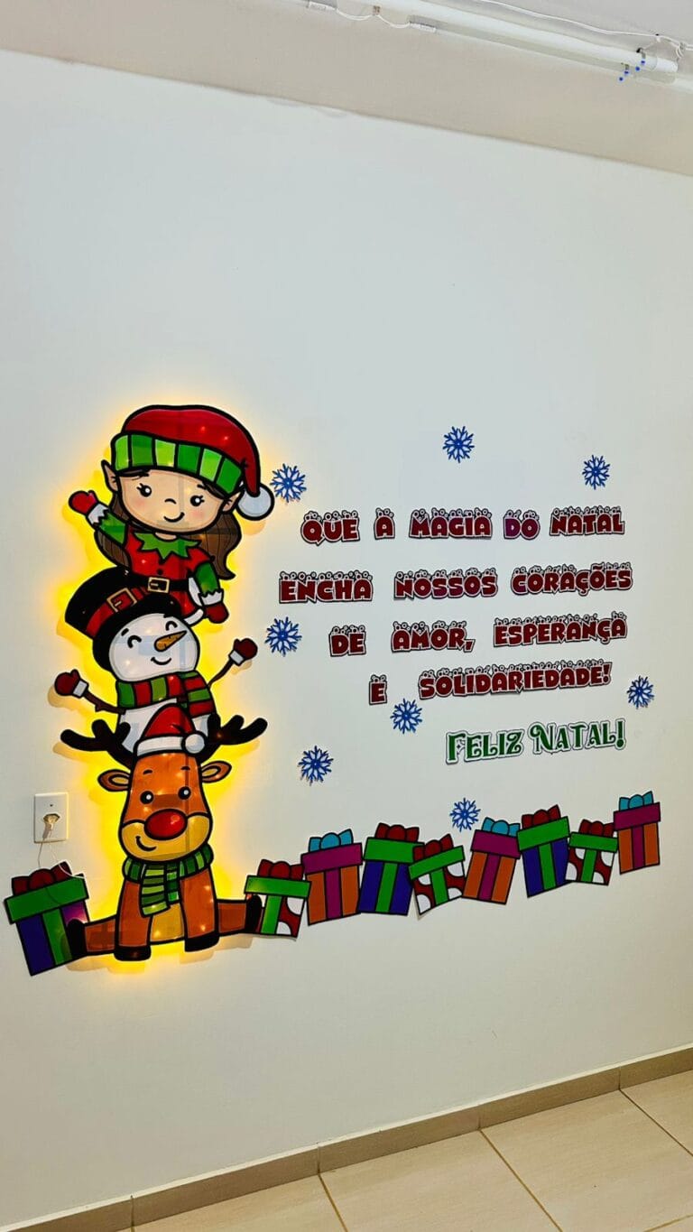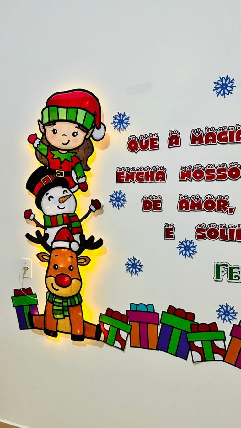 Painel natalino perfeito para decorar seu ambiente com um toque de magia e alegria! Com a frase inspiradora ‘Que a magia do Natal encha nossos corações de amor, esperança e solidariedade!’, esse arquivo traz uma charmosa composição de personagens natalinos, presentes e detalhes festivos.