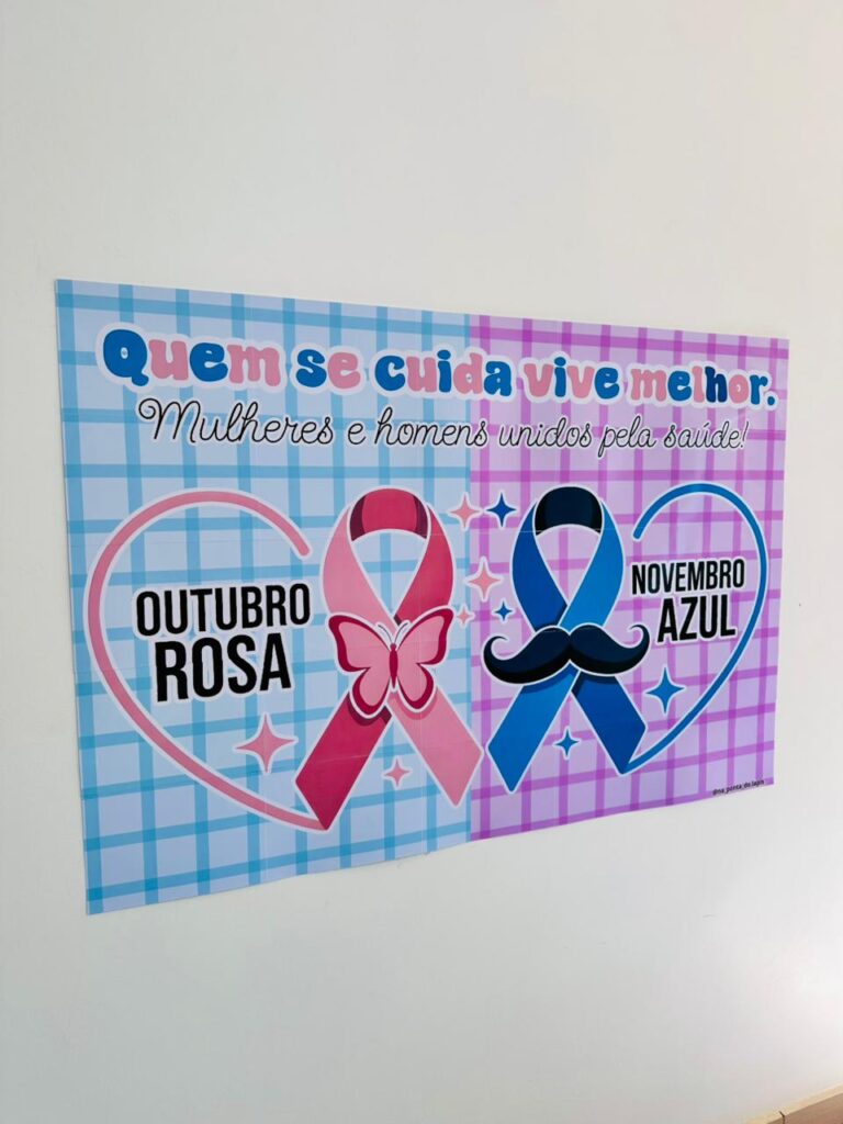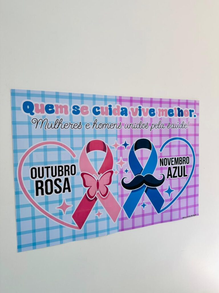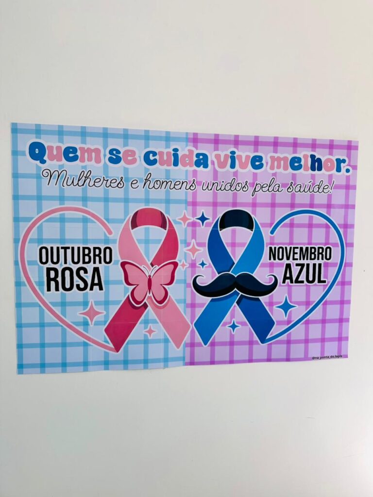 Painel educativo que une as duas campanhas em uma só mensagem de conscientização: “Quem se cuida vive melhor!”