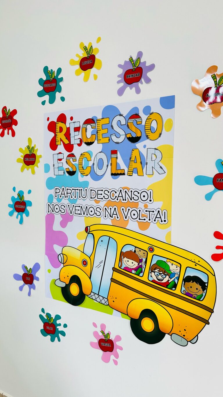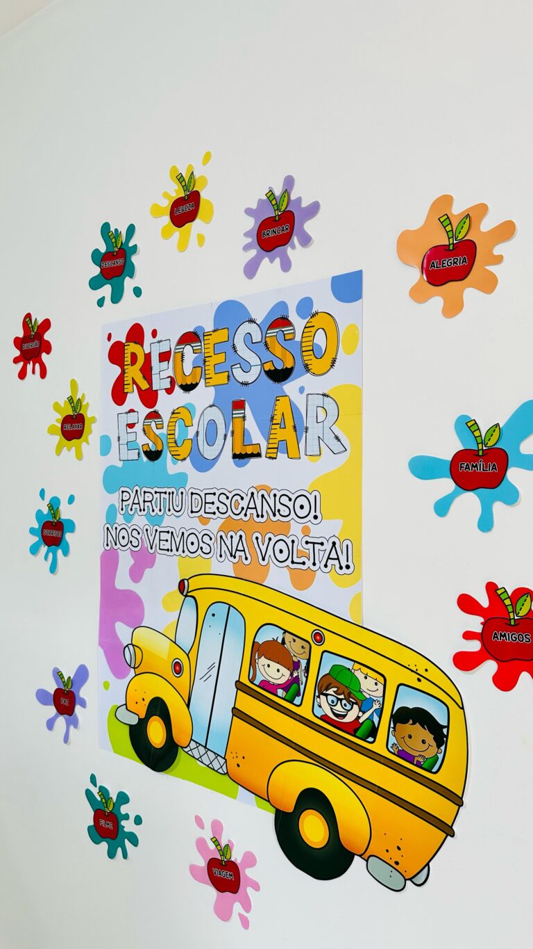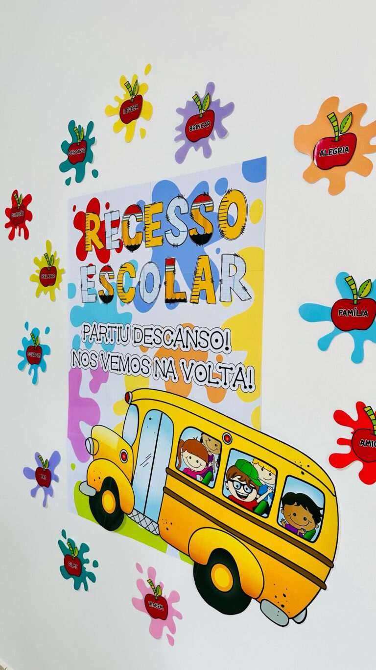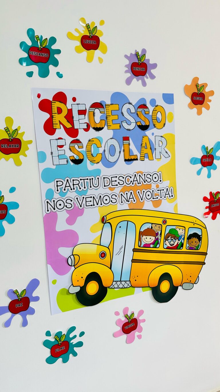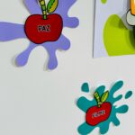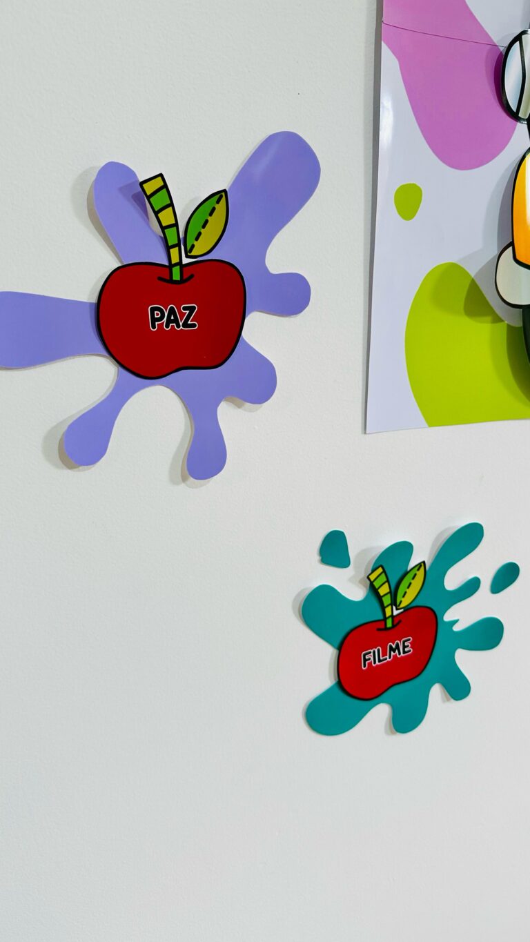 12 pingos de tinta e 12 maçãs com palavras relacionas com “descanso”